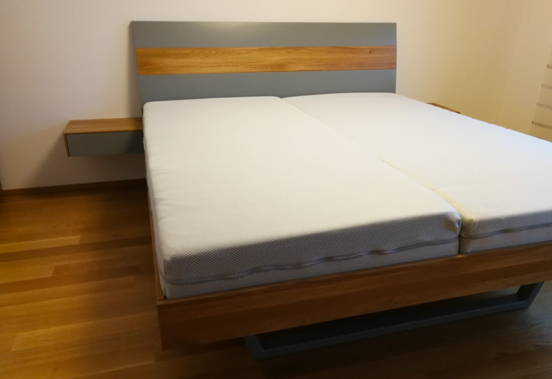Ob Single-Bett, oder XXL Familienbetten mit 270cm Breite und 200 oder 220cm Länge. Leicht- oder Schwergewichte finden ruhigen Schlaf. Für jeden bauen wir das richtige Bett und passende Schränke, Ablagen, Anziehhilfen, Sitzgelegenheiten oder Nachttische.